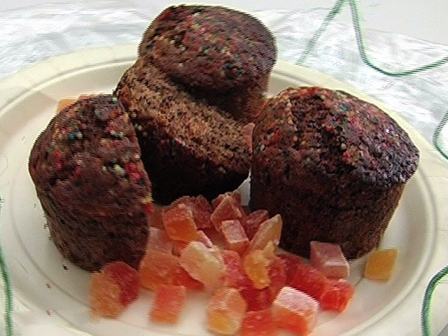 Вкуснейший десерт особо прекрасен на свежем воздухе.Состав:какао — 50 гр;мука — 250 гр;сахар — 100 гр;разрыхлитель — 2 столовых ложки;сода — 1/2 столовой ложки;масло — 150 гр;молоко — 160 гр;яйца — 2 штуки;немного цветного топпинга;ваниль и соль по вкусу. Язык: Русский